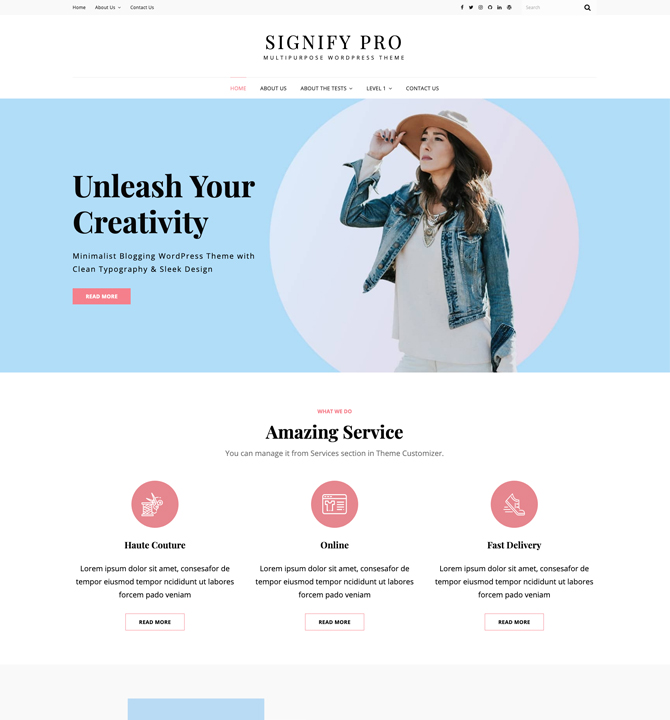 Signify Pro is a Premium Multipurpose Corporate WordPress theme that comes with a modern, sleek, clean design and advanced functionalities. The theme is ideal for all business purposes as well as personal sites. With the responsive design and awesome features in Signify Pro, you can create any corporate or blogging site in just a few clicks. You can find sections like Contact, Featured Content, Gallery, Hero Content, Header Top Options, Logo Slider, Promotion Headline, Stats, Services, Team, Testimonials, and more in Signify Pro WordPress Theme. Also, you can reorder different sections on your site with the Sections Sorter option. Moreover, there are also many color schemes and one-click demos available for your convenience. For instance, Dark, Education, Wedding, Photography, eCommerce, and Corporate. All of these amazing schemes are also available as the free versions of Signify Pro and you can install them separately as well. For example, you can install Signify Dark and later on upgrade to Signify Pro with the preferred Dark Color Scheme. Similarly, you can go for other free versions like Signify Education, Signify Wedding, Signify Photography, Signify eCommerce, and Signify Corporate. With all these amazing features, Signify Pro is the perfect pick for all businesses to perform at a professional level across a broad spectrum of interests and industries. Official Support Forum: https://themepalace.com/support-forum/ Full Demo: https://wenthemes.com/theme-demos/?demo=signify-pro