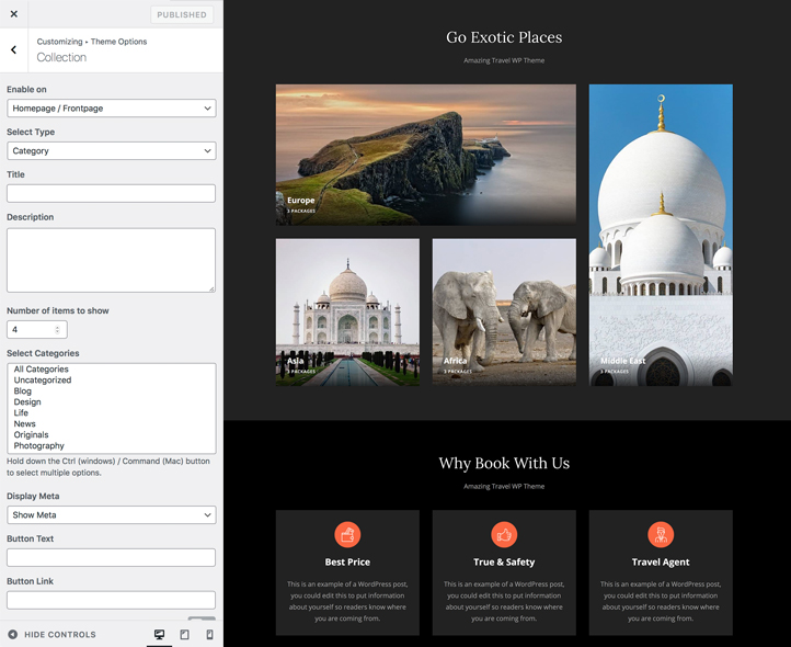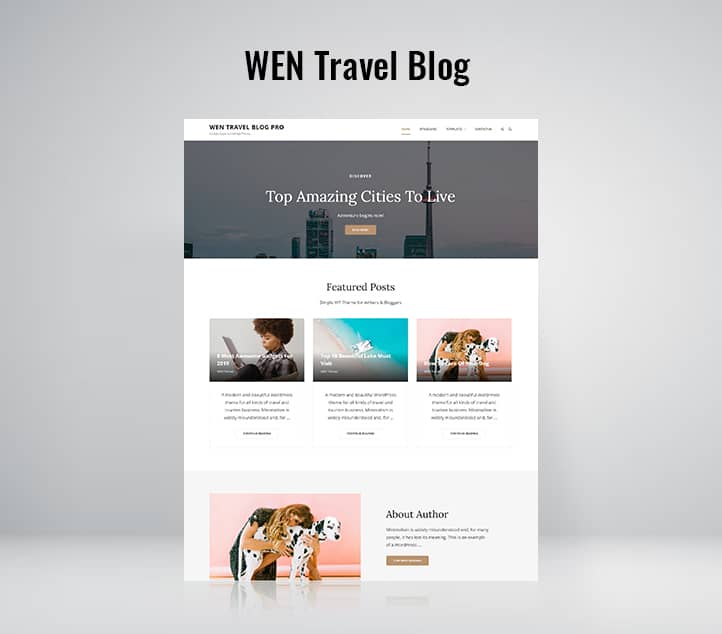 WEN Travel Photography is a clean, minimal, and chic Photography WordPress theme. The theme is suitable for all kinds of modern photography blogs and websites. WEN Travel Photography is a child theme of WEN Travel, a multipurpose Travel WordPress theme. This theme has a modern photography design that fits all kinds of photography blogs and other businesses related. This free photography theme includes many features and sections that are absolutely essential. For instance, Header Media, Slider, Featured Trips, Hero Content, Collection, Service, Portfolio, Stats, Testimonials, Latest Trips, Featured Content, and more. All of the mentioned sections are completely responsive and utterly easy to use. These features help you display your photography skills and experience in the most pleasing way possible. WEN Travel Photography also comes with a single-click Photography demo; making it absolutely easier than ever to set up your photography site. With the responsive design that this theme boasts, your photography site will look amazing across all screen sizes. Moreover, the theme is translation-ready as well.