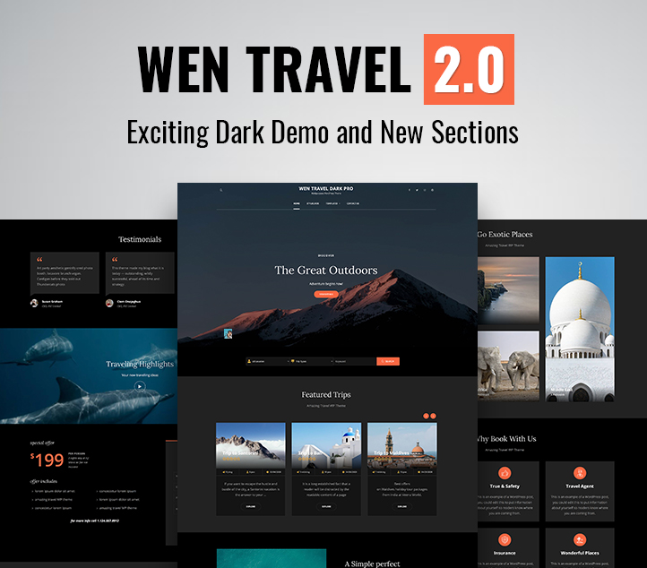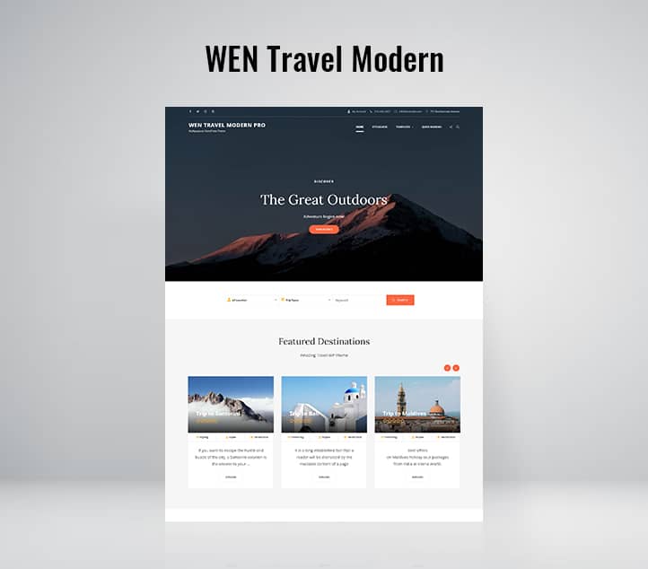 WEN Travel Corporate is a clean, responsive, and professional Corporate WordPress theme. The theme is ideal for all kinds of corporate websites including Travel, Professional Business Ventures, Startup, Marketing, Corporate Blog, and more. WEN Travel Corporate is a child theme of WEN Travel, a popular multipurpose Travel WordPress theme. This corporate child theme gives you the ability to create robust, resourceful, and modern corporate sites across any business field and industry. WEN Travel Corporate comes with highly customizable features. For instance, Collection, Featured Content, Featured Slider, Header Top Options, Hero Content, Logo Slider, Portfolio, Services, Special Offer, Stats, Testimonials, and more. All of these features are fully responsive and help to display your services and products in an elegant matter. With the available one-click corporate demo, it is easier than ever to start building your corporate site with ease. Zero coding knowledge is required to set up your corporate site with WEN Travel Corporate. WEN Travel Corporate is fully compatible with the popular Travel WordPress plugin, WP Travel. After activating the plugin, you will be provided with extra travel sections like Featured Trips, Latest Trips, and Trip Filter. With all the astounding features and functionalities, WEN Travel Corporate is the ideal choice if your goal is to design a successful business website.
