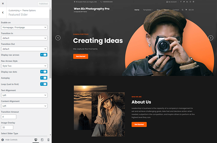 Our Premium Multipurpose Corporate WordPress Theme, WEN Biz Pro is now photography-ready with its new update. WEN Biz Pro 4.0 now comes with enhanced sections and features along with an elegant dark Photography Demo. This premium theme now includes enhancements to different sections and features as well. For instance, added photography color scheme added nav buttons on Featured Slider, added transparent header option, added portfolio style one design, added border style on header top, and other minor CSS updates.