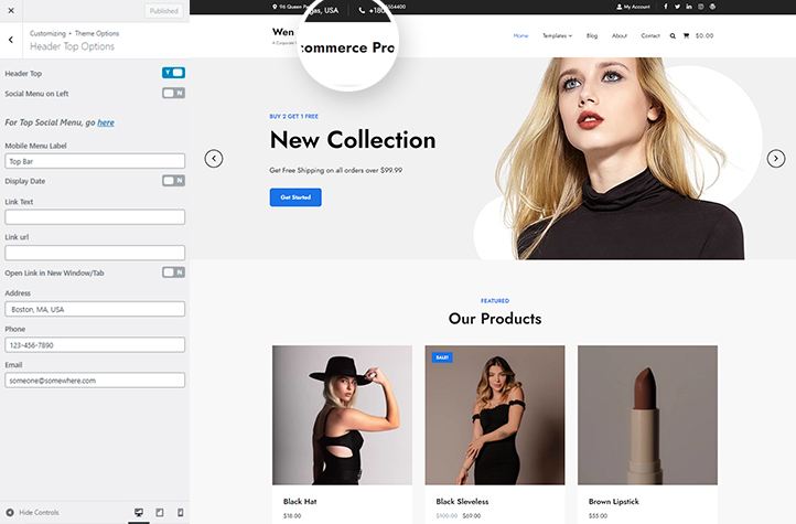 The Header Top section now comes delivers a more elegant look with a chic border style to separate each information on the Header Top area.