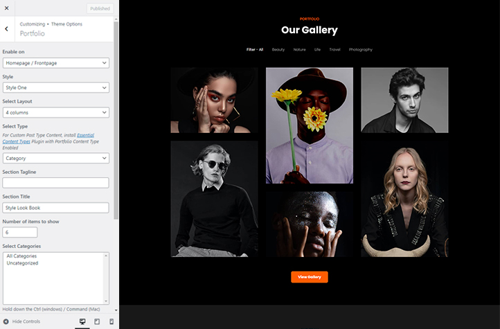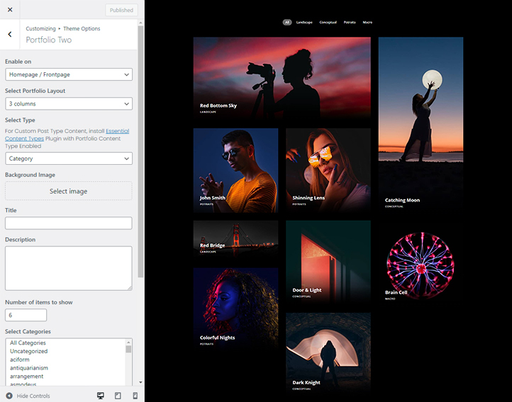 With the new update, you can choose from two different style options on how you want the Portfolio section to be displayed.