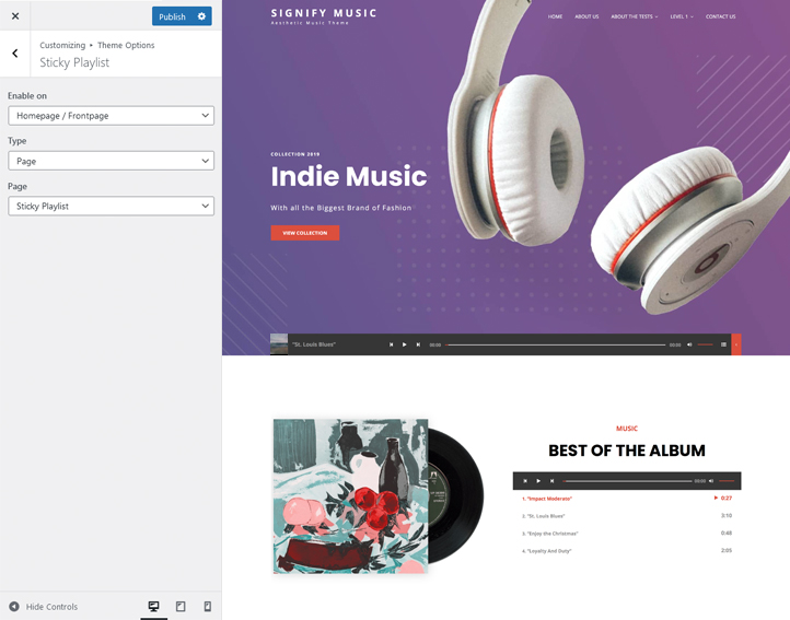 Signify Pro now lets you add a sticky playlist that sticks at the bottom of your site. The feature is something that your fans look for on your website if you own a music website. You can add either page, post, or category to your Sticky Playlist. Add a nice list of songs and let your audience listen to some soothing music as they explore your site. Keep your visitors from getting bored!