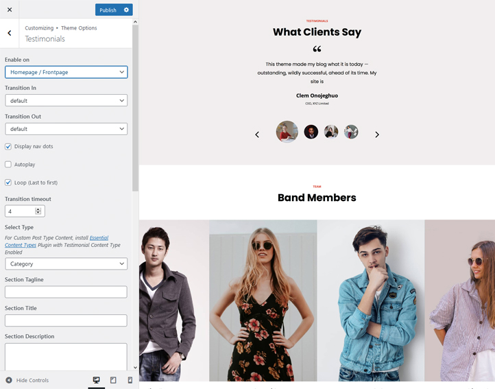 Customer Testimonials are crucial when you are in the music industry. That is why we have enhanced the Testimonials section by adding a background image option. You can now add a custom background image to your testimonials section and make your site more engaging and happening.